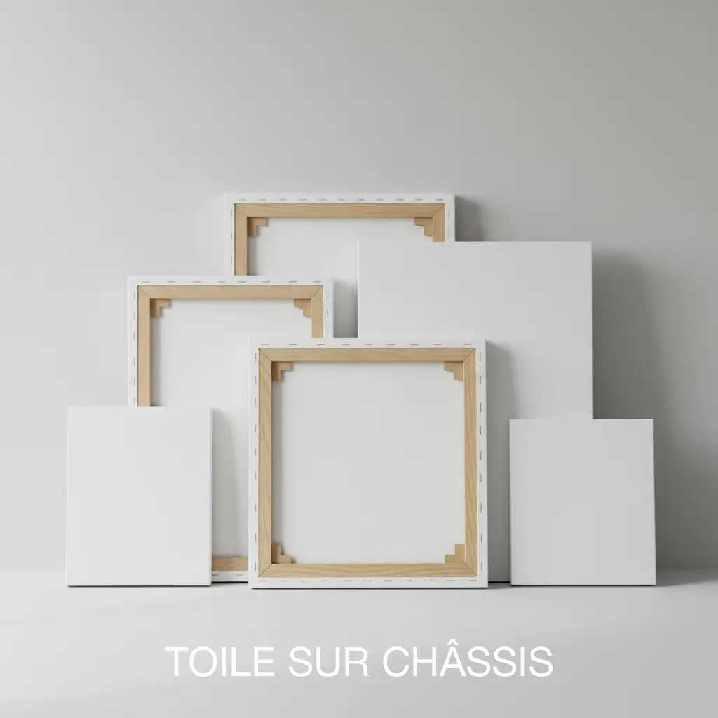 Toiles sur châssis en bois (canvas) : Pour une texture artistique authentique, prête à accrocher.