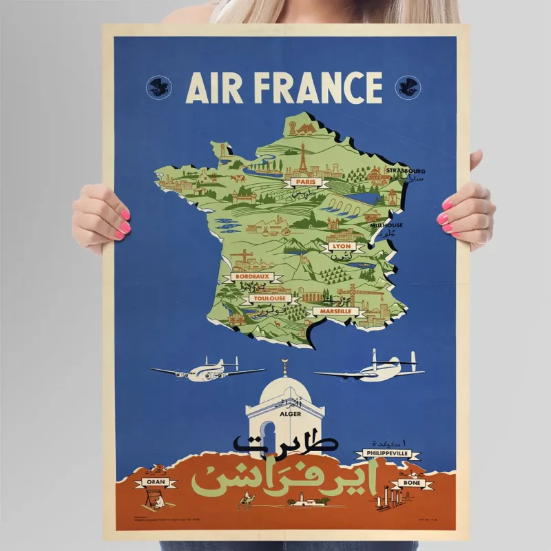 Affiche vintage aviation Algérie – Air France Afrique du Nord 1954