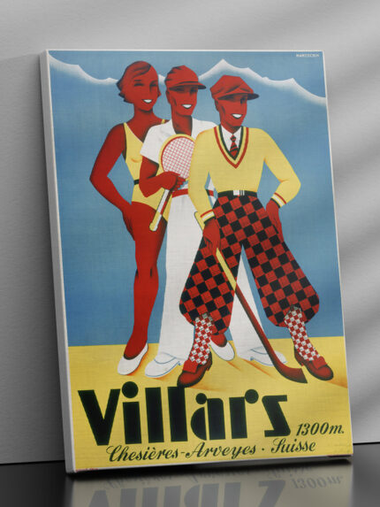 Affiche vintage Villars 1934 – Station de ski et tourisme suisse