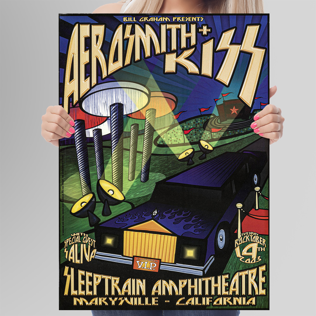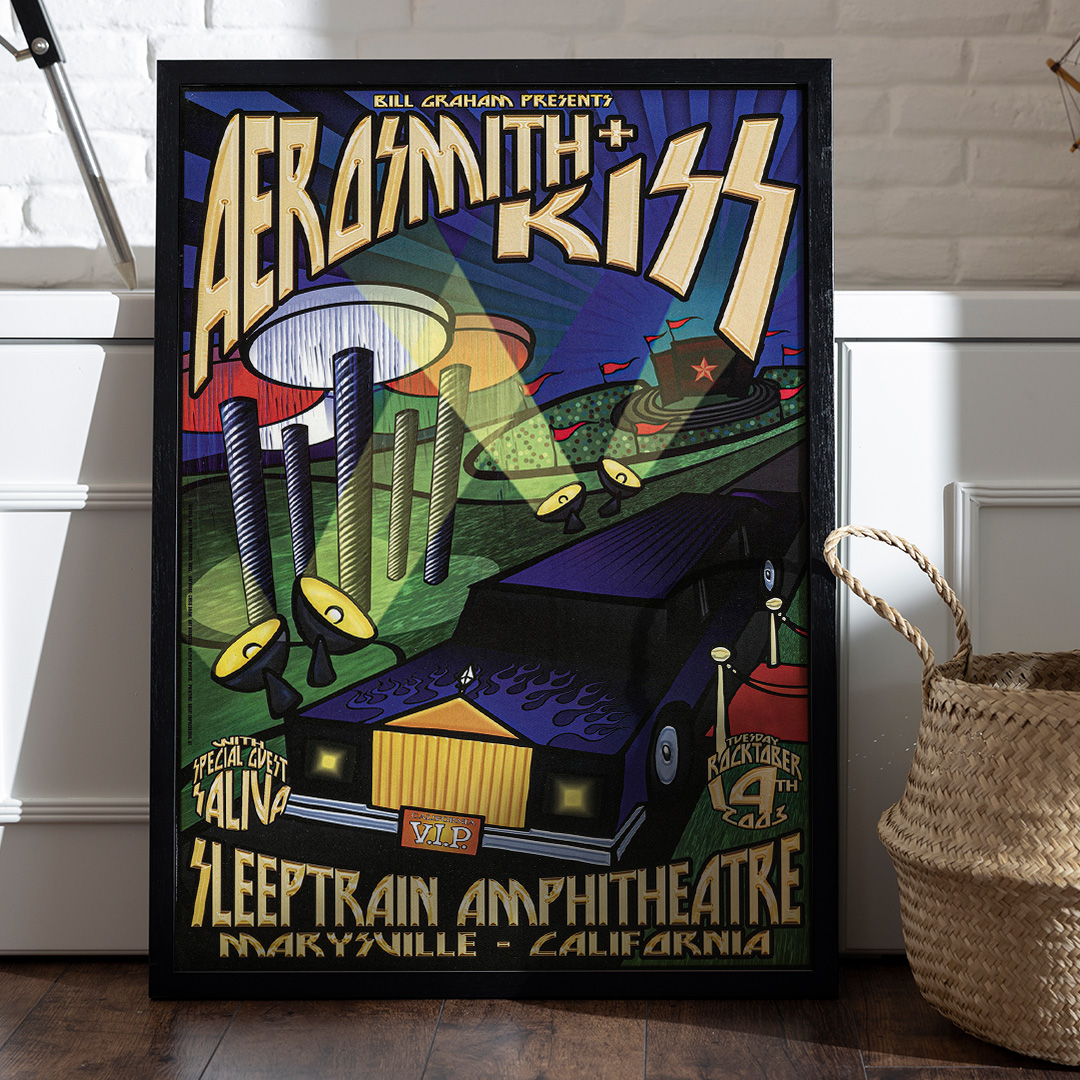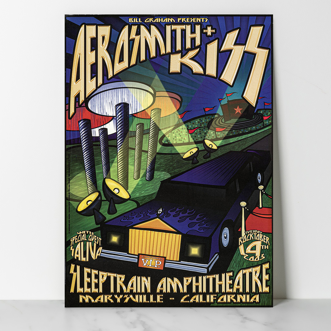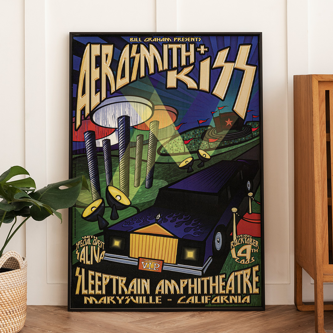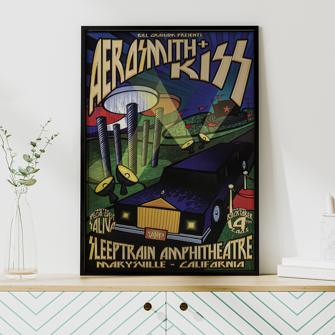 Affiche concert Aerosmith et KISS – Sleep Train Amphitheatre 2003. Un poster rock puissant pour une décoration musicale affirmée.