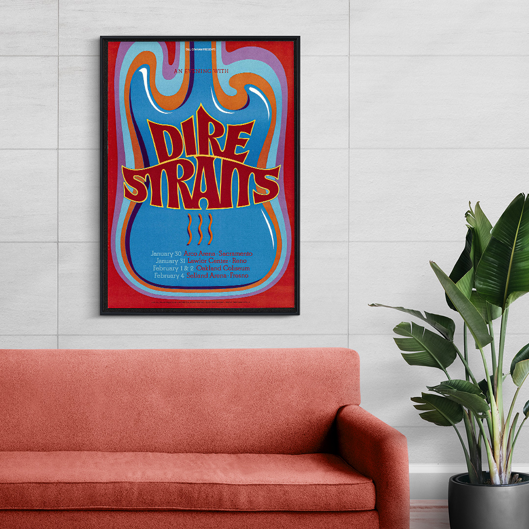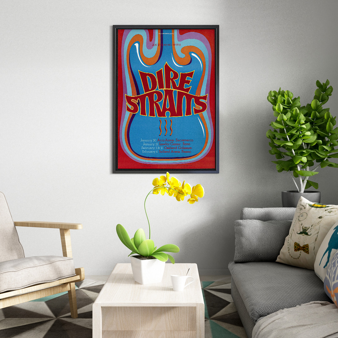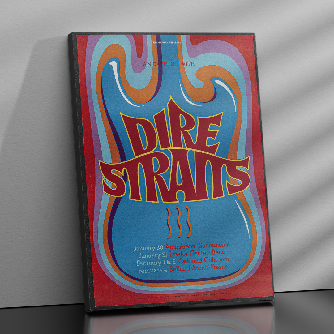 Affiche Dire Straits – Arco Arena 1992. Une création vintage inspirée du concert mythique à Sacramento. Disponible en plusieurs formats et finitions, cette affiche rend hommage à l’un des groupes les plus emblématiques du rock britannique.