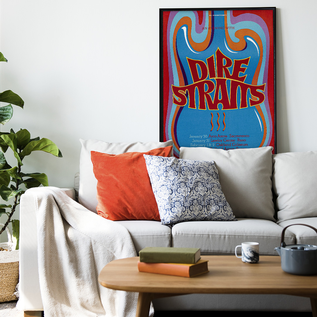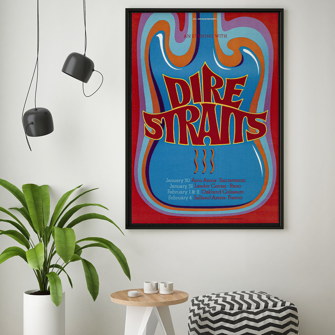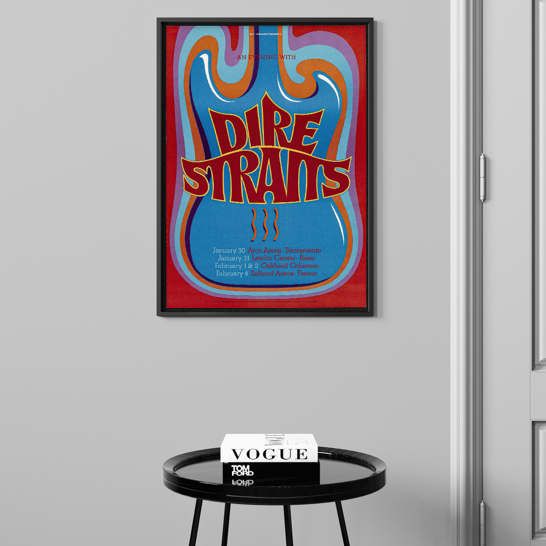 Affiche Dire Straits – Arco Arena 1992. Une création vintage inspirée du concert mythique à Sacramento. Disponible en plusieurs formats et finitions, cette affiche rend hommage à l’un des groupes les plus emblématiques du rock britannique.