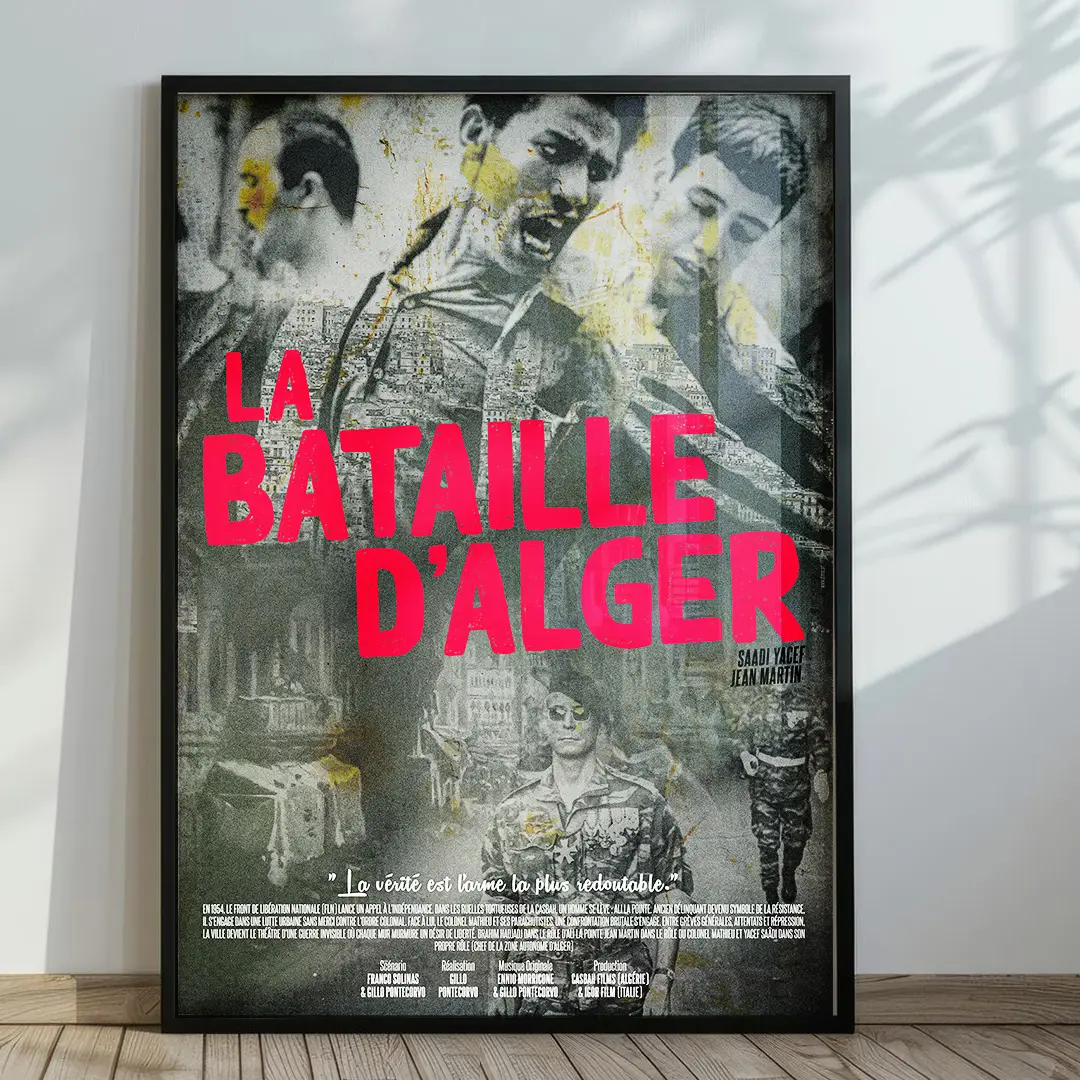 Découvrez l’affiche du film La Bataille d’Alger by Dzecoart, un hommage vibrant à la figure légendaire d’Ali la Pointe. À travers ce design exclusif, nous célébrons l’esthétique brute du chef-d’œuvre de Gillo Pontecorvo et l’âme résistante de la Casbah. Une pièce d’art incontournable pour conjuguer histoire, cinéma culte et décoration de caractère.