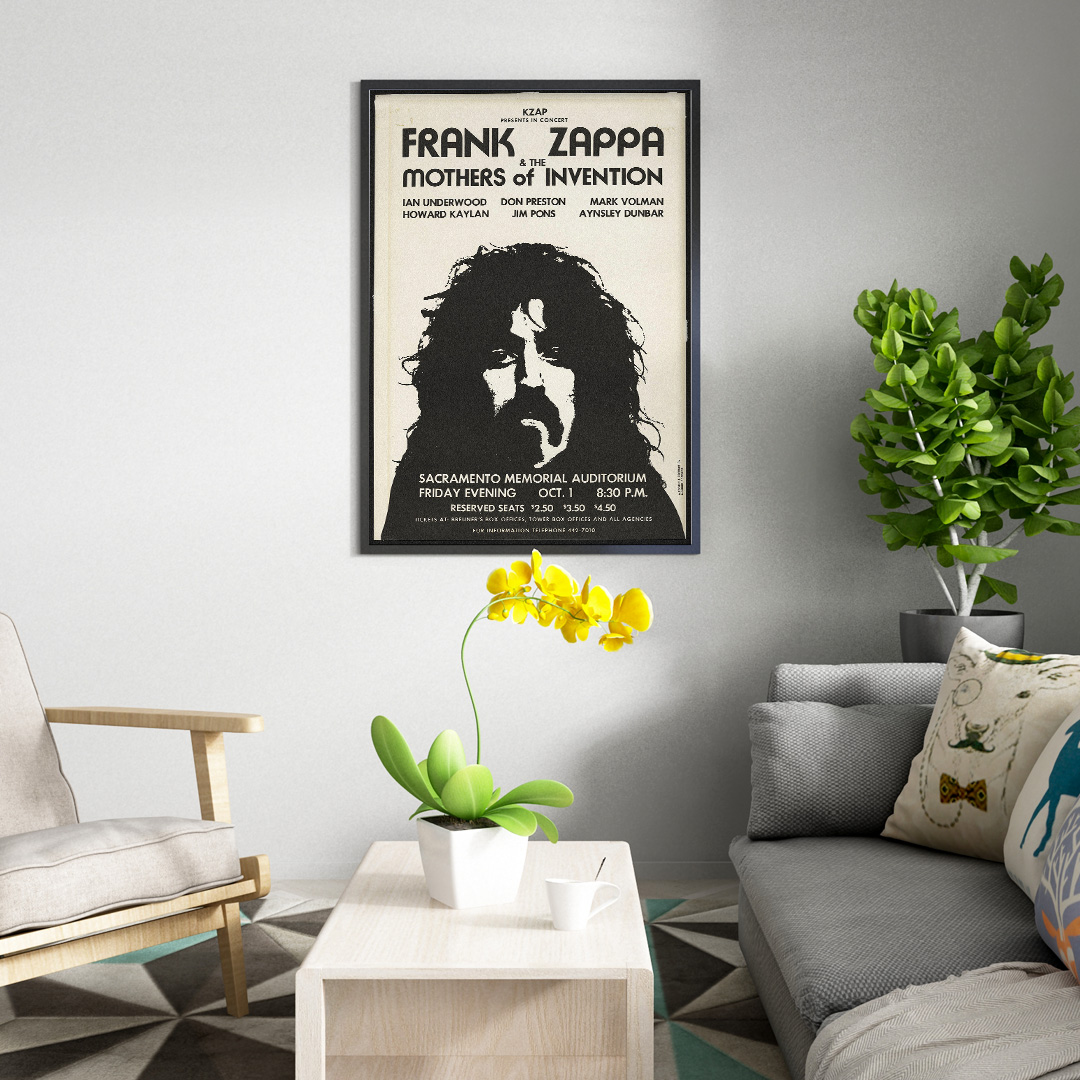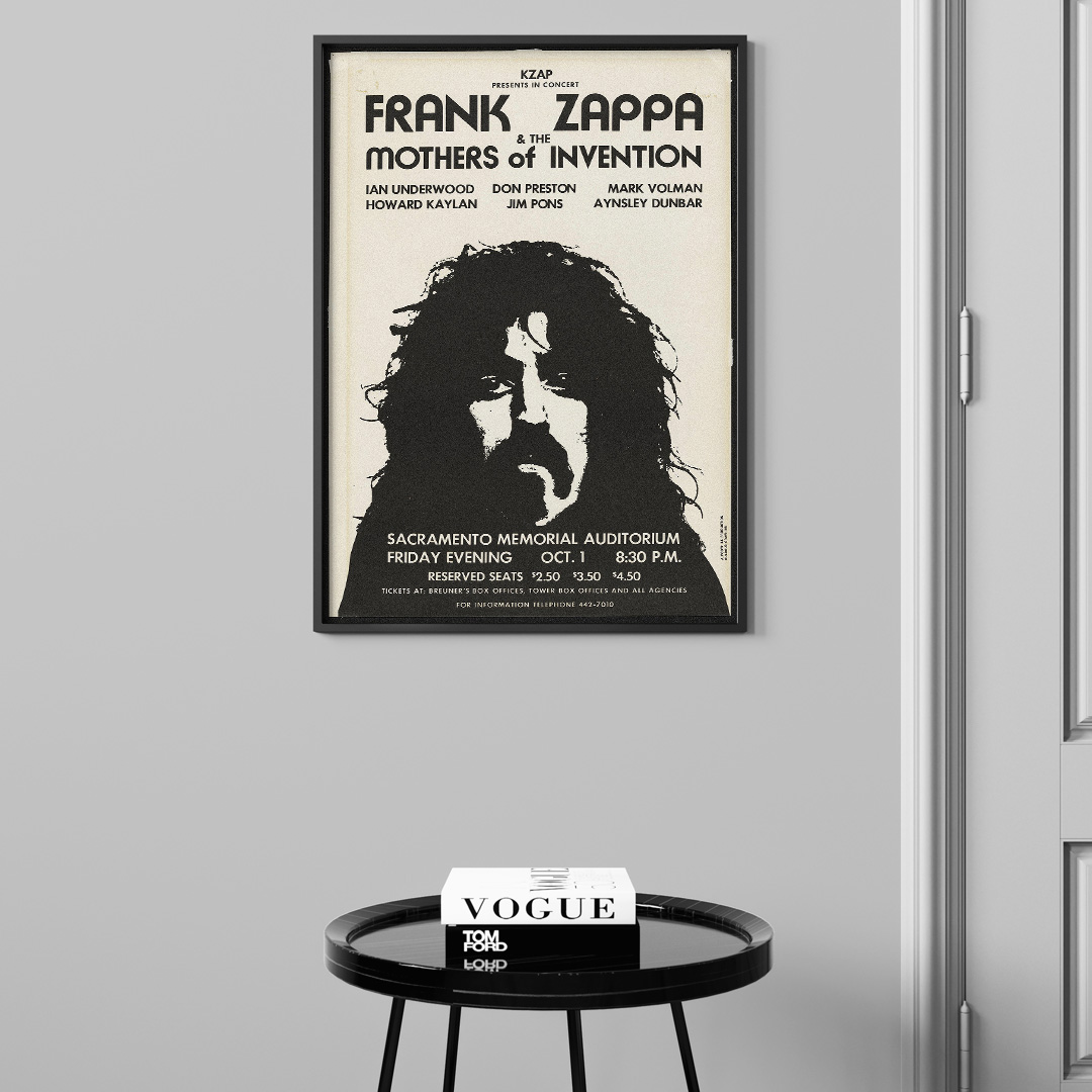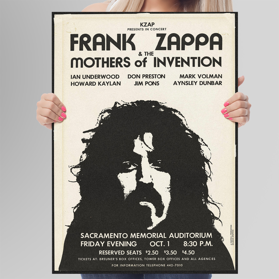 Affirmez votre goût pour la musique et le design avec cette affiche Frank Zappa and the Mothers of Invention – Sacramento 1971. Elle incarne l’esprit libre d’une époque mythique.