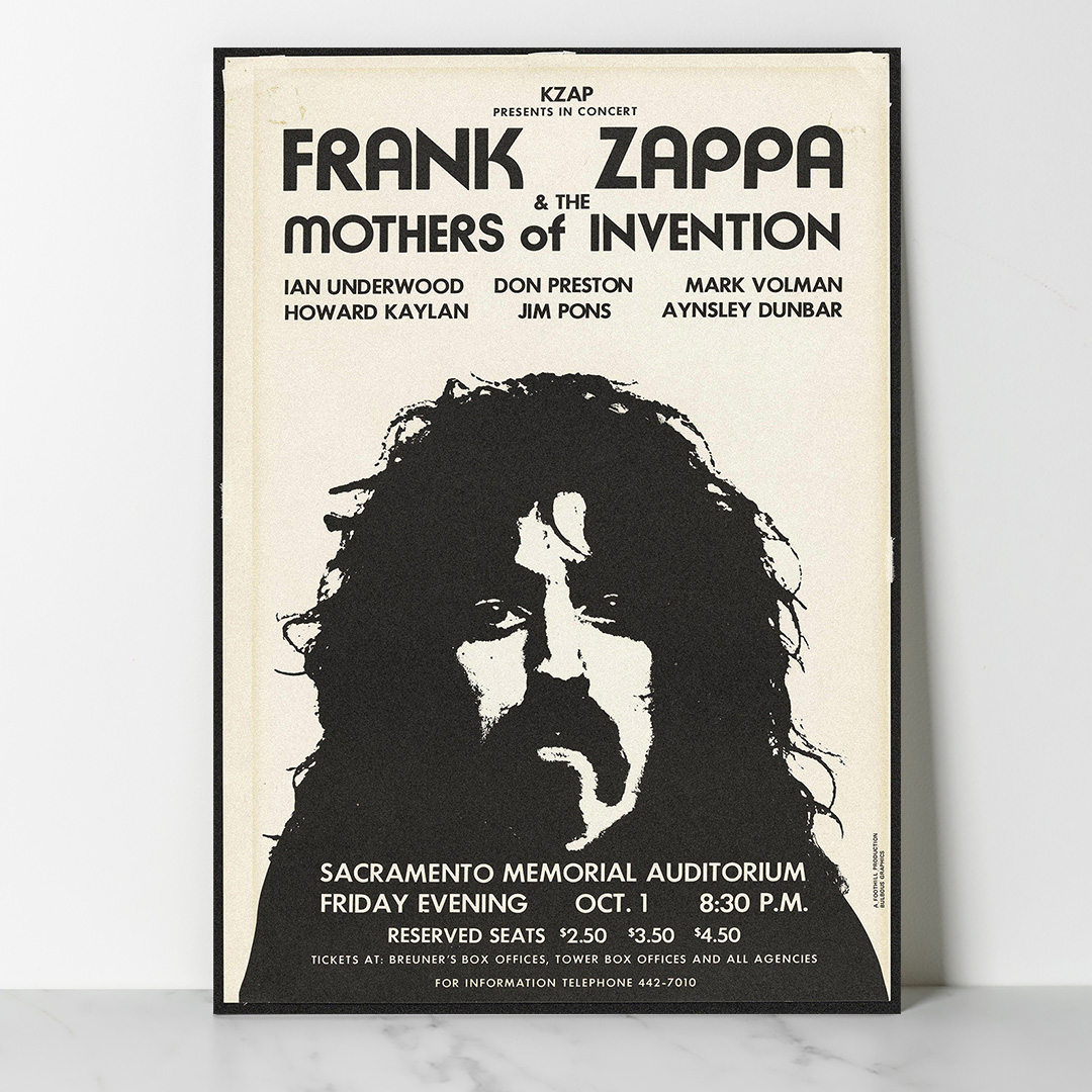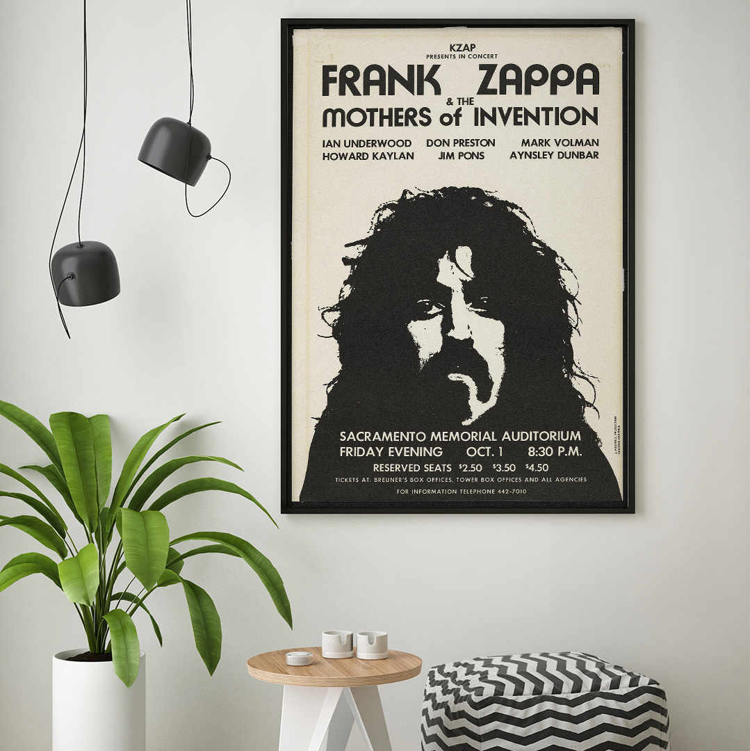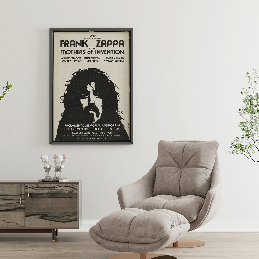 Affirmez votre goût pour la musique et le design avec cette affiche Frank Zappa and the Mothers of Invention – Sacramento 1971. Elle incarne l’esprit libre d’une époque mythique.