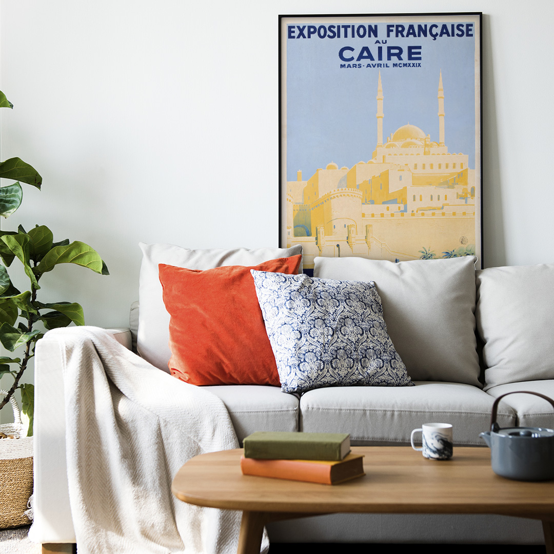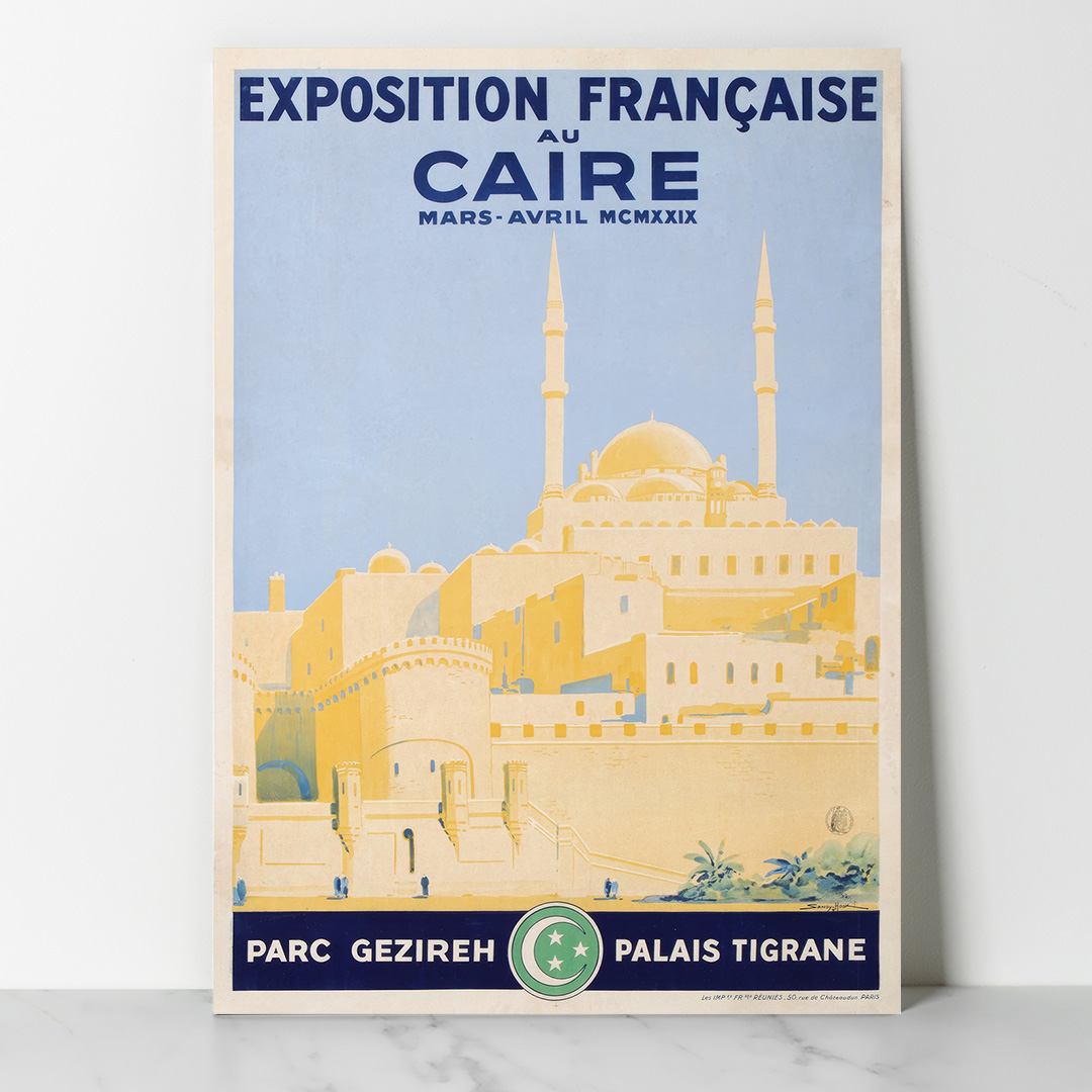 L’affiche Le Caire – Exposition Française 1929 est un témoignage rare de l’effervescence culturelle et artistique de l’entre-deux-guerres. Créée pour promouvoir l’Exposition française organisée au Caire en 1929, au Parc Gezireh, autour du Palais Tigrane, elle incarne le dialogue entre modernité européenne et fascination orientale.