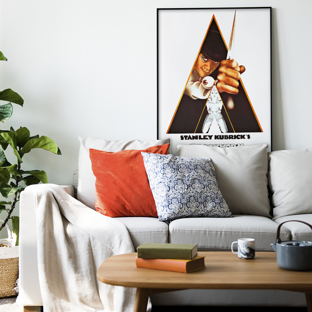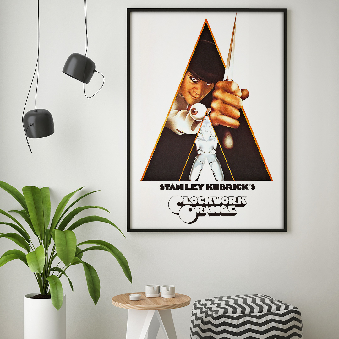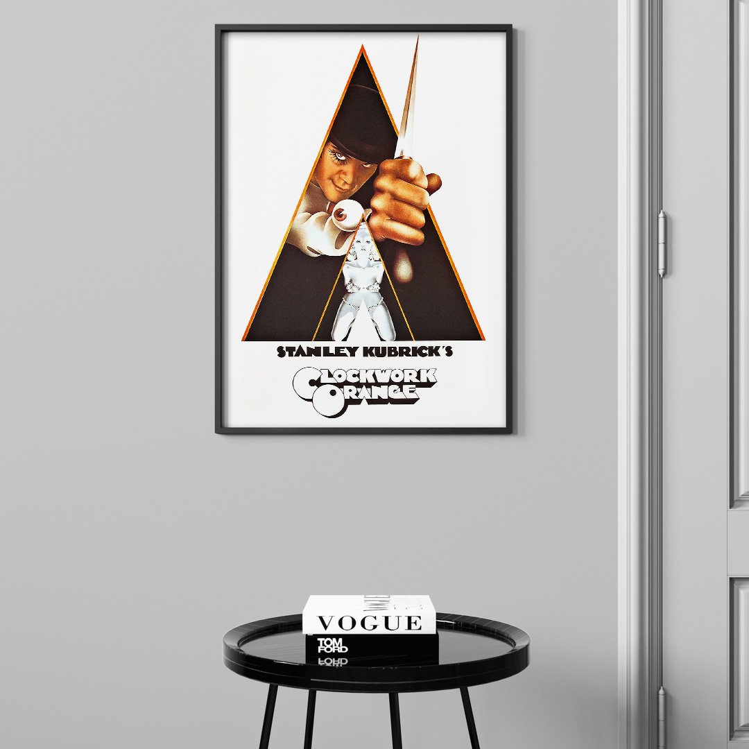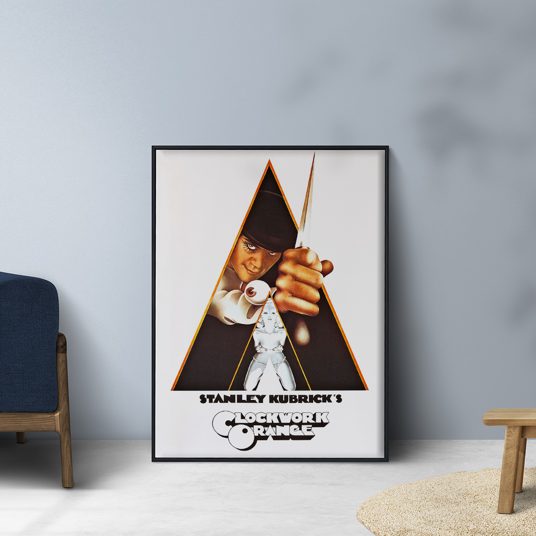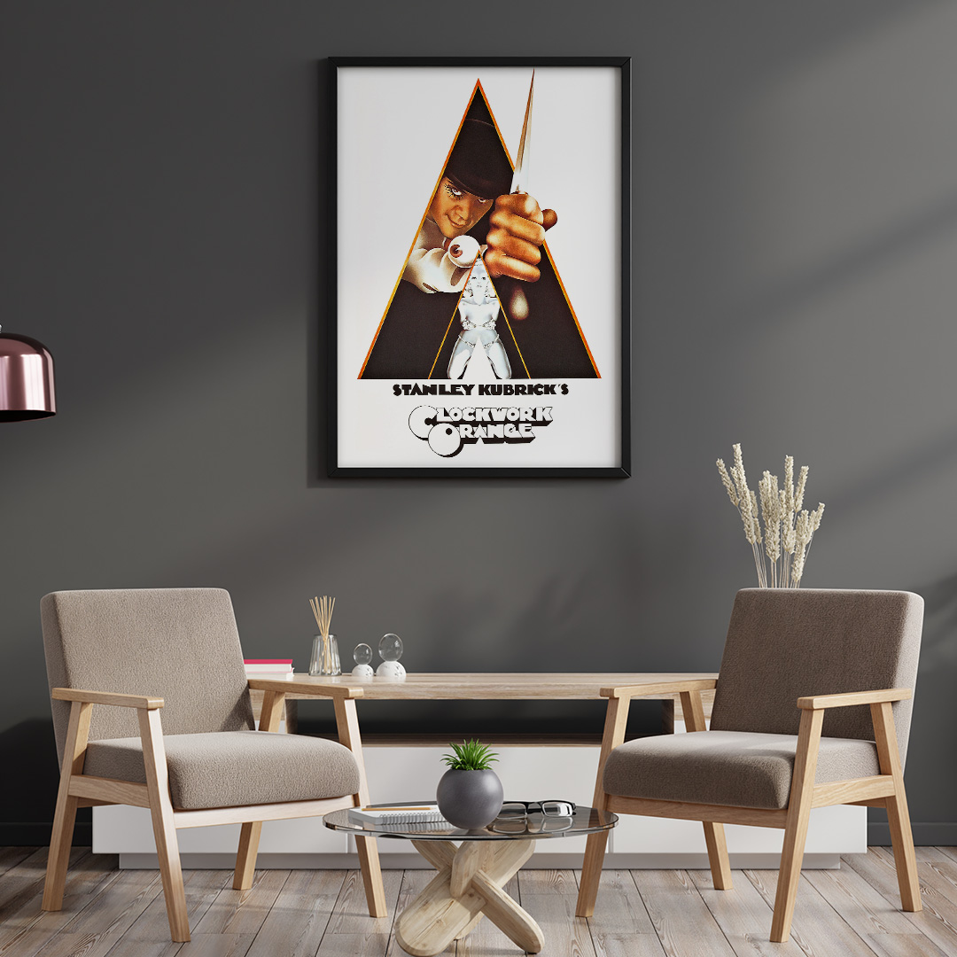 Plongez dans l’univers dérangeant du cinéma des années 70 avec l’affiche du film culte Orange Mécanique de Stanley Kubrick.