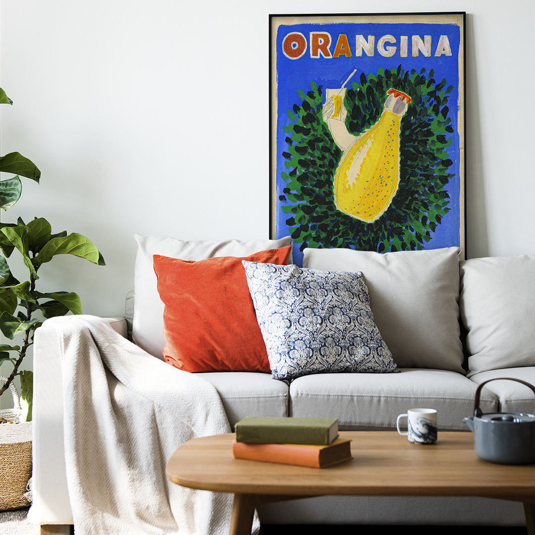 À partir des années 1950, Bernard Villemot a signé plus d’une vingtaine d’affiches pour Orangina. Chacune d’elles a contribué à façonner l’identité visuelle unique de la marque, en la rendant immédiatement reconnaissable dans le monde entier. L’affiche « Summer Drink » s’inscrit dans cette série d’œuvres emblématiques.