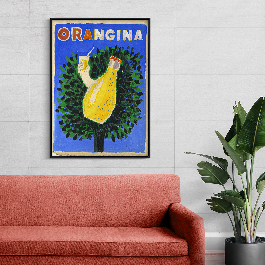 L’affiche « Orangina – Summer Drink » a été réalisée en 1958 par Bernard Villemot, l’un des plus grands affichistes français du XXᵉ siècle. Reconnu pour son style graphique épuré et coloré, il a marqué l’histoire de la publicité avec ses visuels audacieux et élégants.