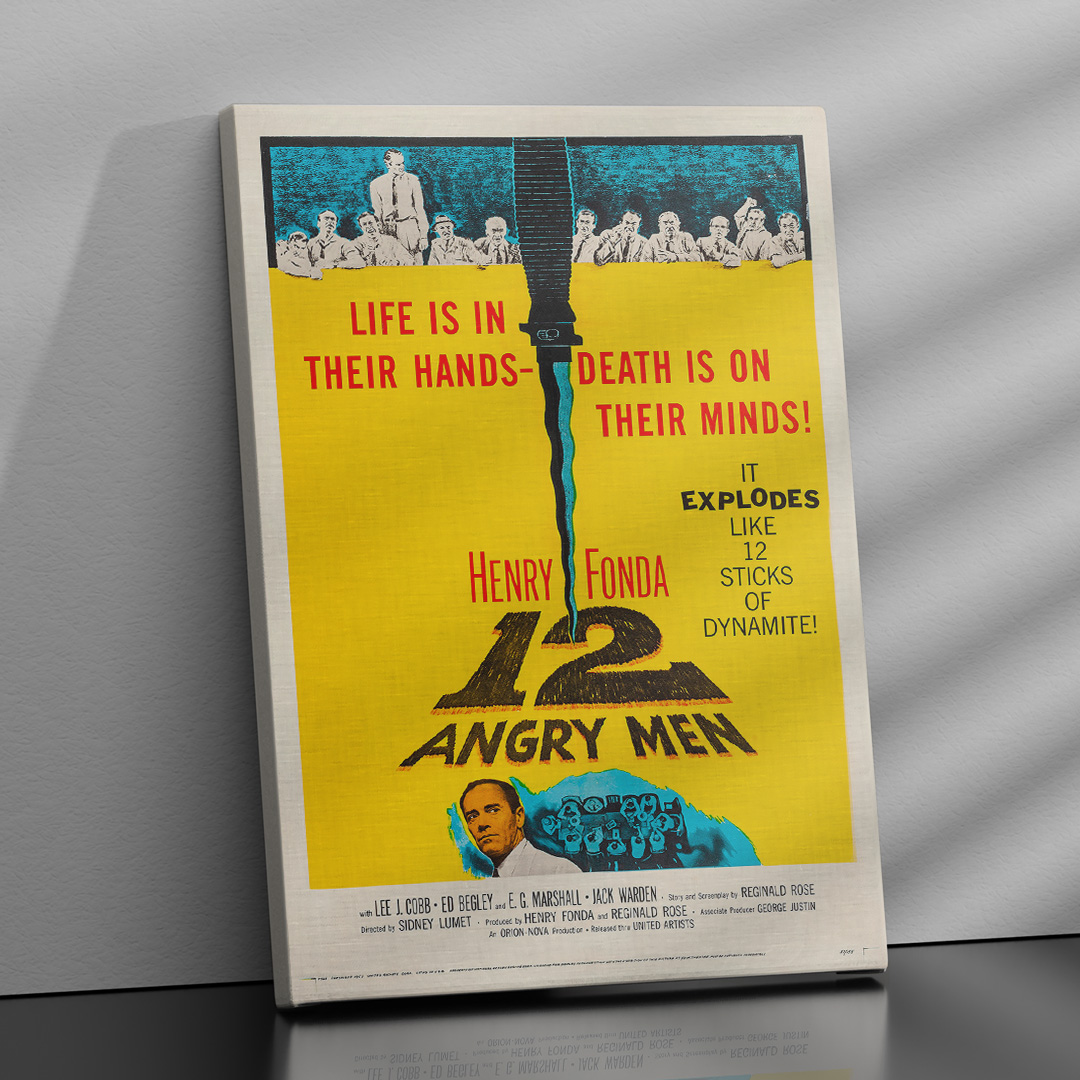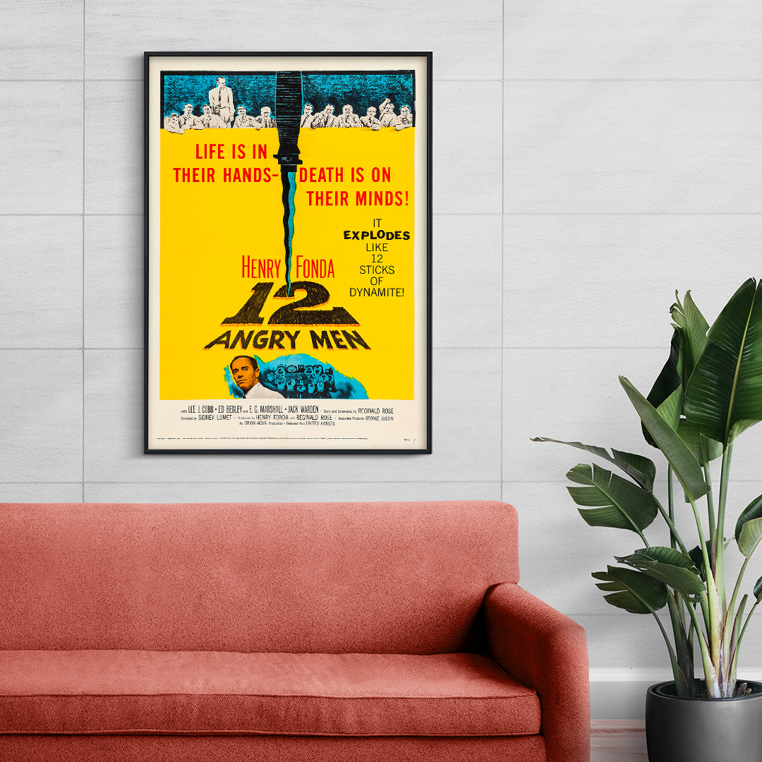 L’affiche Vintage 12 Angry Men rend hommage au film légendaire de Sidney Lumet, sorti en 1957. Ce chef-d’œuvre du cinéma américain met en scène douze jurés enfermés dans une salle de délibération. Leur mission : décider du sort d’un jeune accusé. Rapidement, les tensions montent, révélant les préjugés et la complexité de la justice humaine.