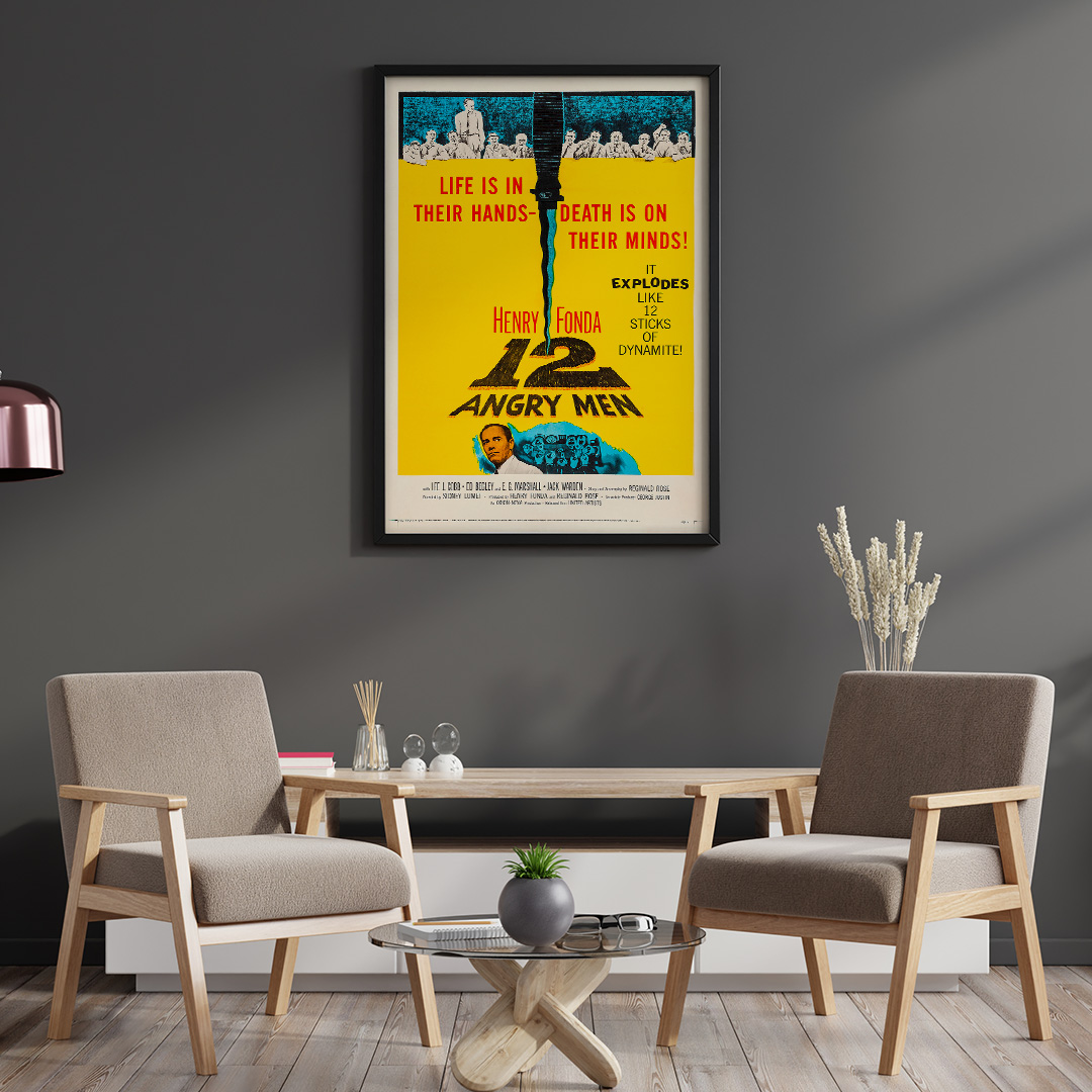 Revivez l’intensité du film 12 Angry Men avec cette affiche vintage iconique, symbole de justice et de tension dramatique.