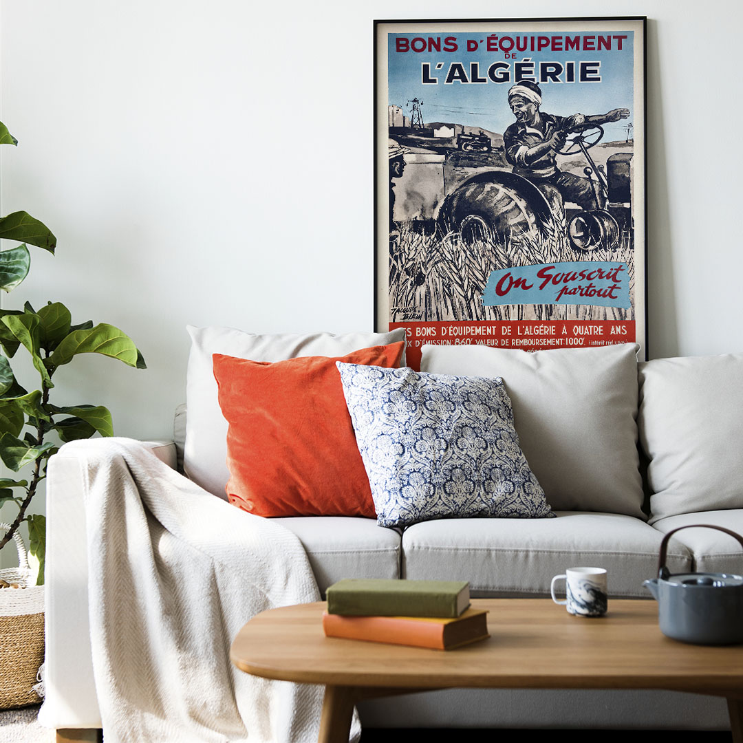 Pourquoi cette affiche vintage Algérie est un indispensable ? Que vous soyez un passionné d’histoire, un amoureux du patrimoine algérien ou un collectionneur d’art publicitaire, cette pièce coche toutes les cases. Elle s’intègre parfaitement dans un salon contemporain pour créer un contraste saisissant, ou dans un bureau pour une ambiance studieuse et élégante. Sa thématique liée à l’agriculture et à l’effort collectif en fait un objet de conversation fascinant pour vos invités.