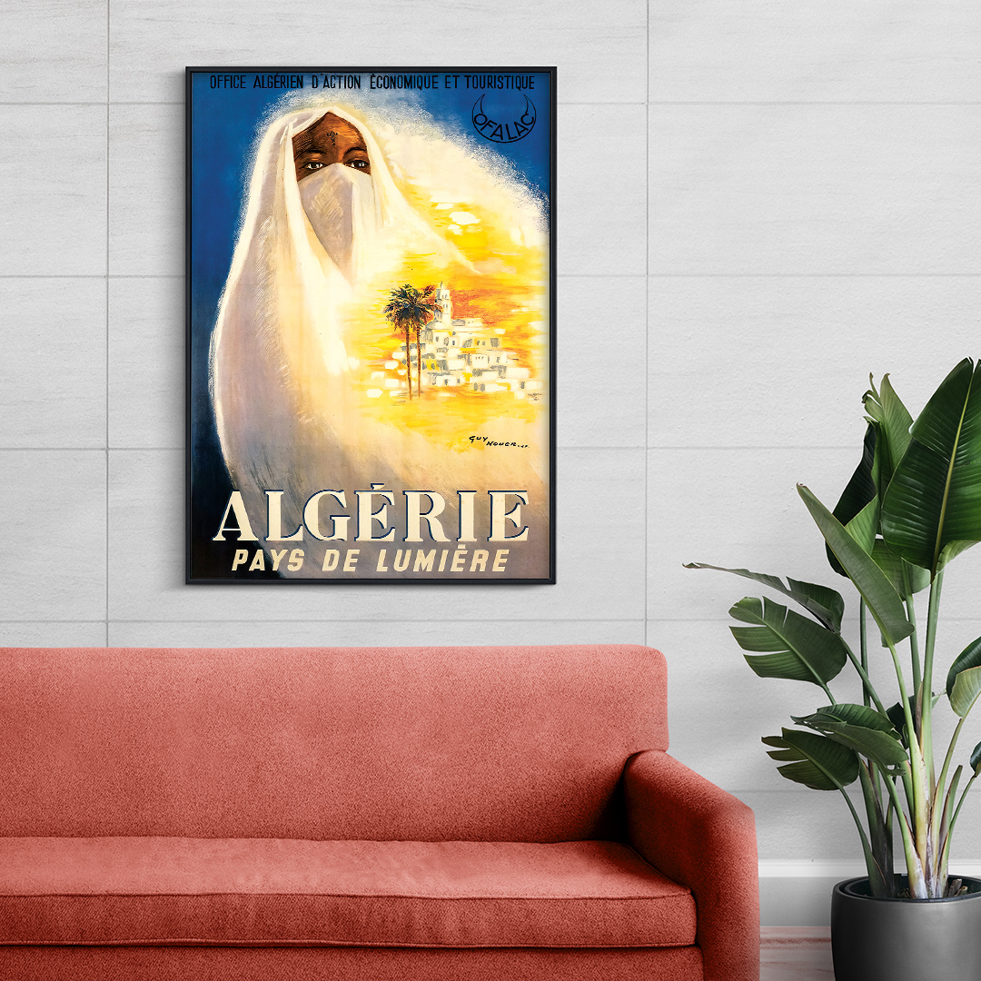 Apportez à vos murs une touche d’histoire et d’élégance avec l’affiche vintage Algérie pays de lumière.