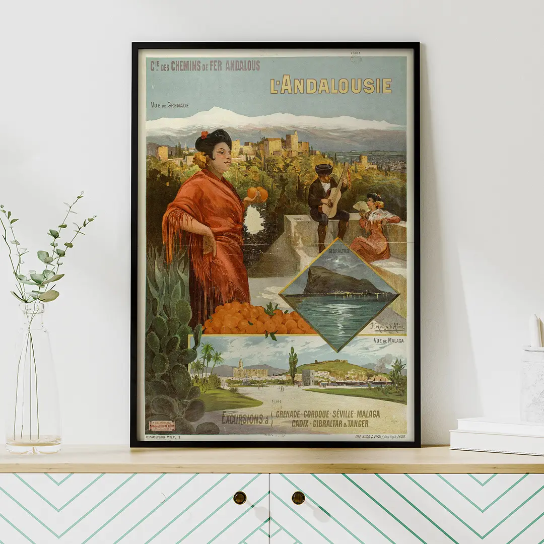 Nous reproduisons cette Affiche vintage Andalousie en haute définition afin de respecter chaque nuance de couleur et chaque détail graphique. Nous utilisons un papier premium épais avec finition mate pour conserver l’authenticité visuelle de l’œuvre originale.