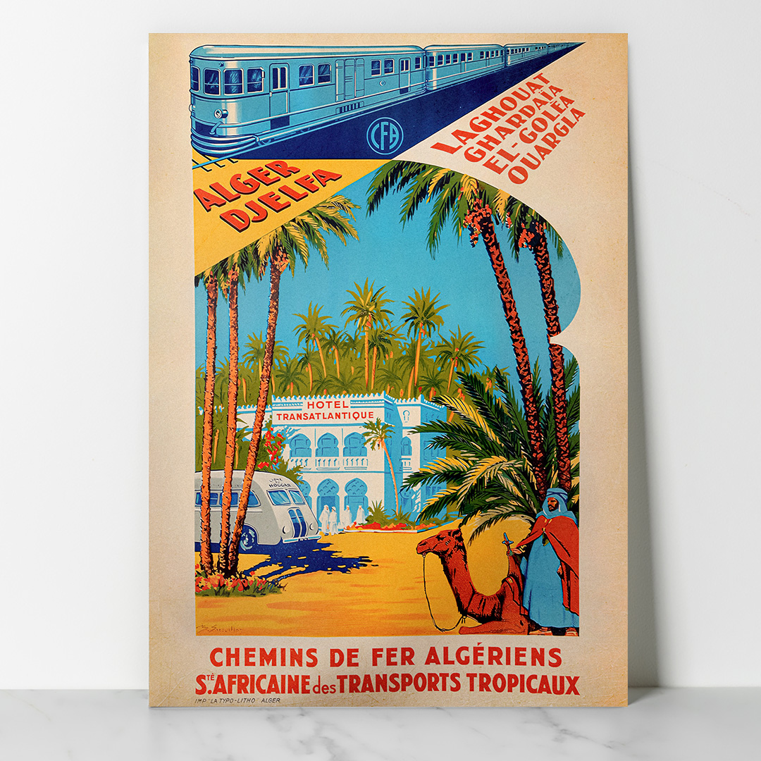 Affiche vintage Chemins de fer Algériens – Alger Djelfa 1930
