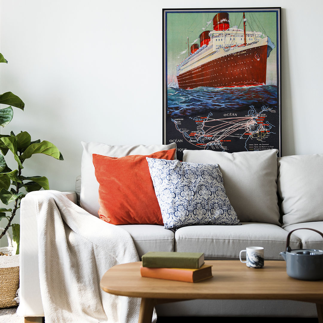 L’affiche vintage Compagnie Générale Transatlantique trouve naturellement sa place dans un salon, un bureau, un espace professionnel, un hôtel ou un café à l’ambiance élégante. Elle apporte une touche nautique, culturelle et intemporelle, tout en racontant une histoire liée aux grandes compagnies maritimes françaises.