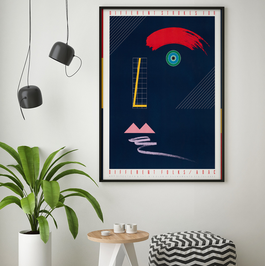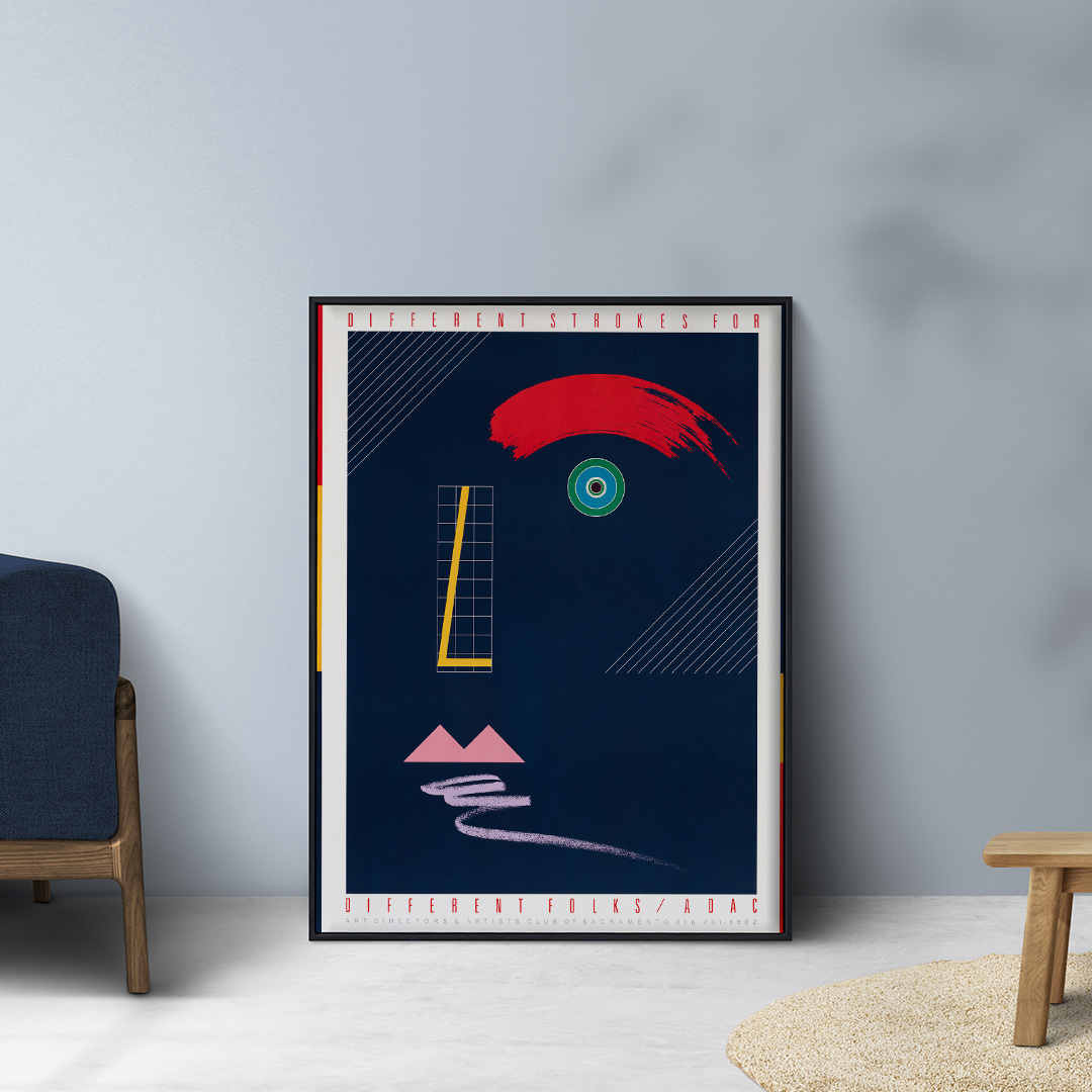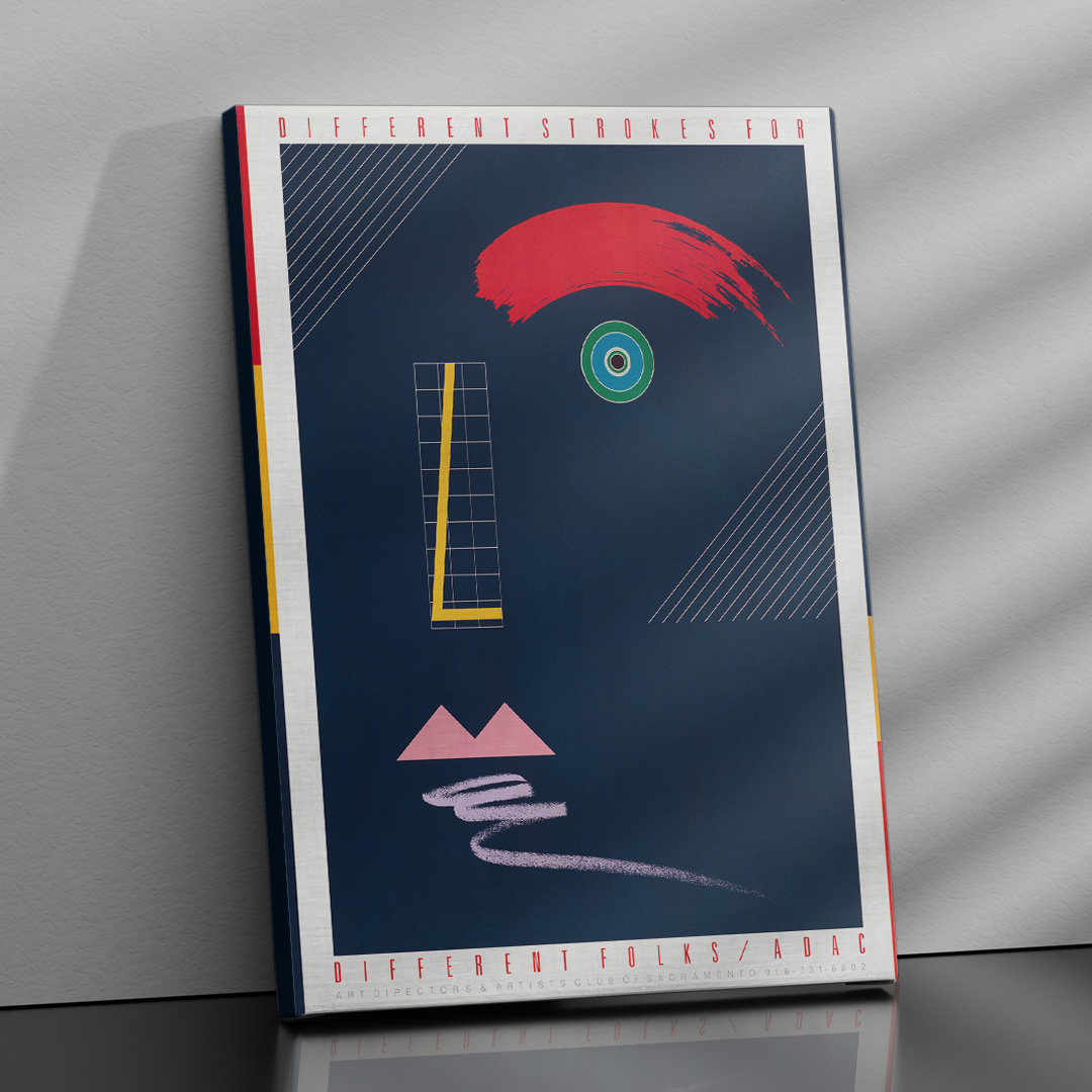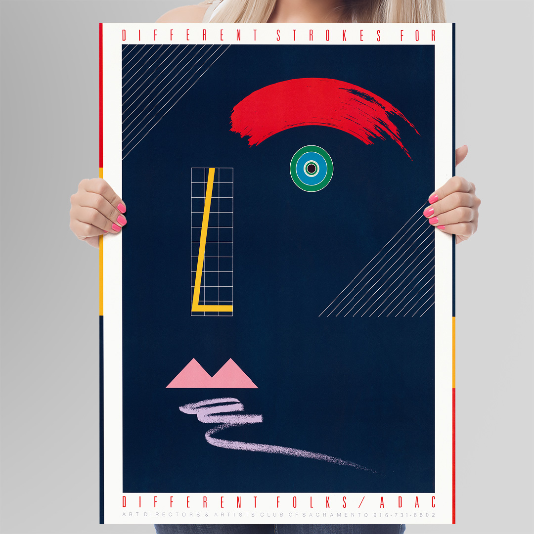 L’affiche vintage Different Strokes for Different Folks ADAC (1984) est une pièce emblématique du mouvement postmoderniste américain des années 80. Conçue pour le Art Directors & Artists Club of Sacramento, elle célèbre la créativité, la différence et la liberté d’expression artistique.