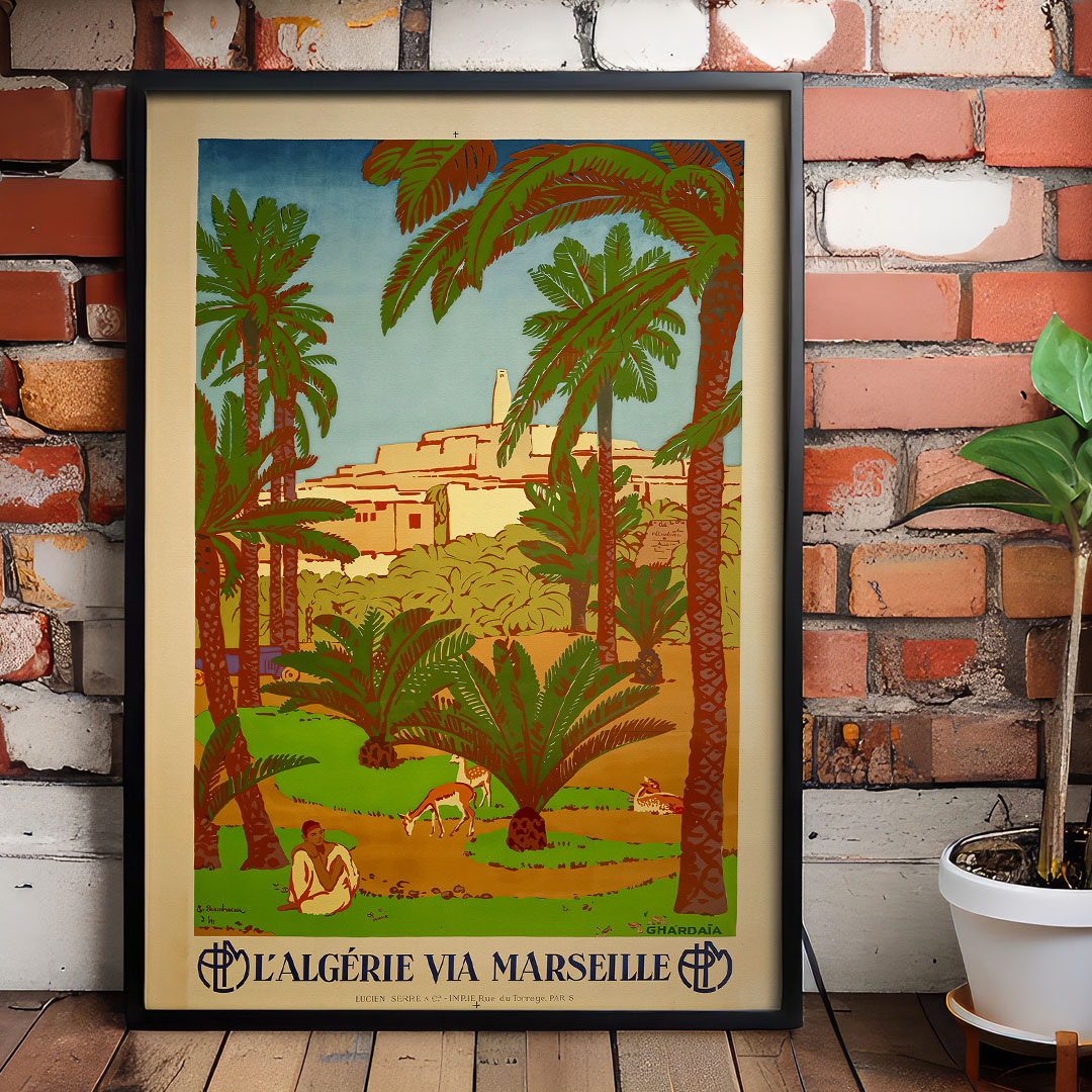 Affiche vintage Ghardaïa – L’Algérie via Marseille | PLM Dzeco Art
