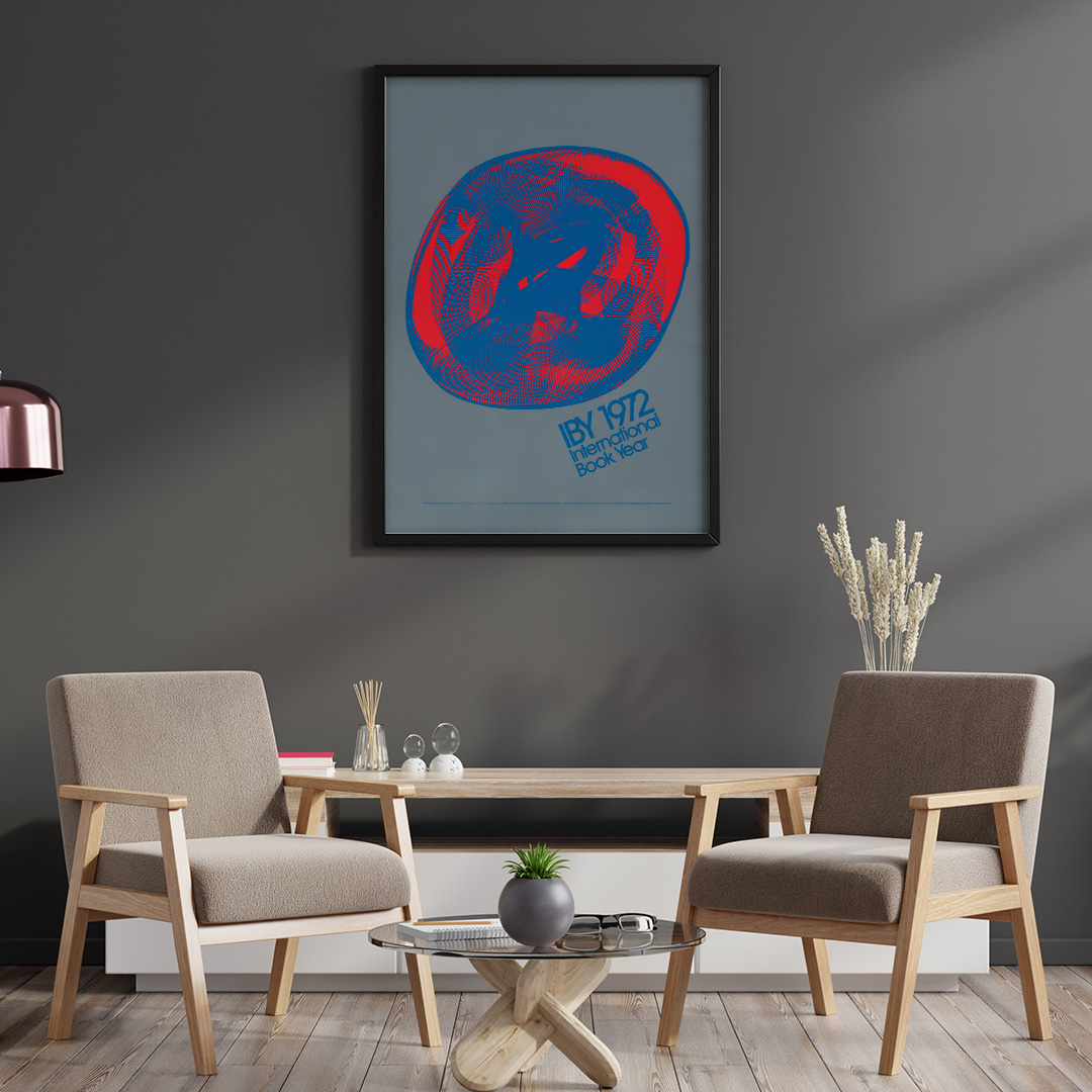 Cette affiche IBY 1972 trouve naturellement sa place dans un bureau, une bibliothèque ou un espace de travail moderne. Son équilibre entre minimalisme et symbolisme en fait une pièce décorative raffinée et intellectuelle.