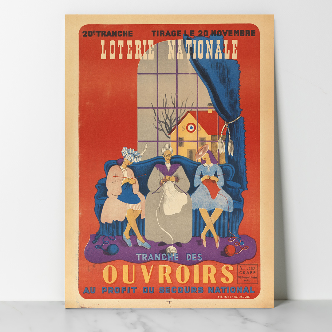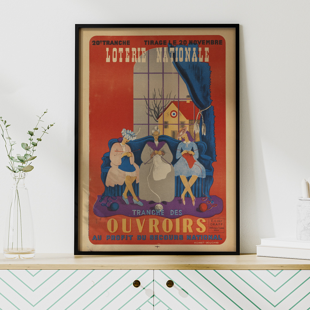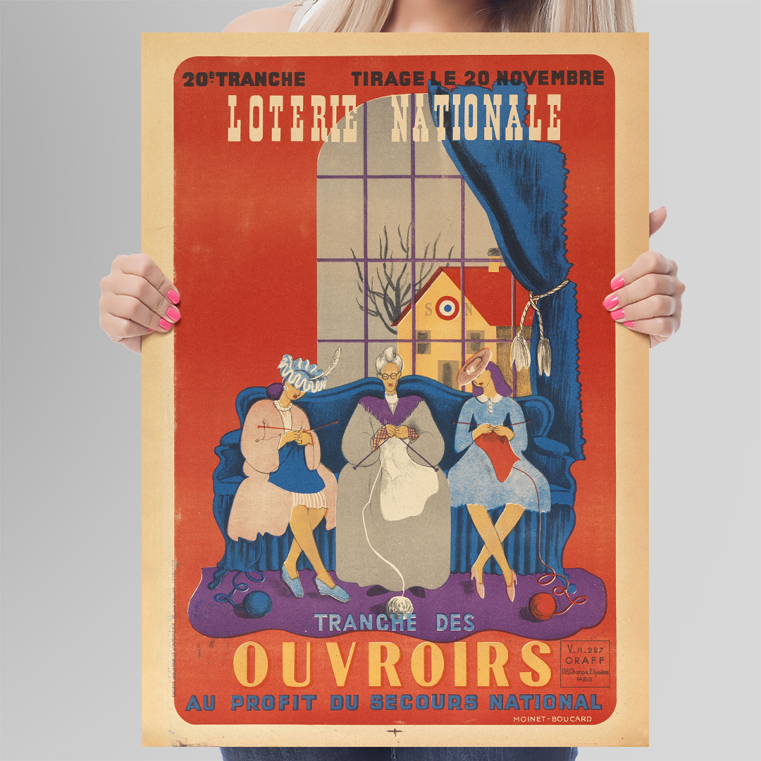Affiche vintage Loterie Nationale 20e Tranche 1942 par Moinet-Boucard. Une pièce historique forte, parfaite pour une décoration élégante chargée d’histoire.