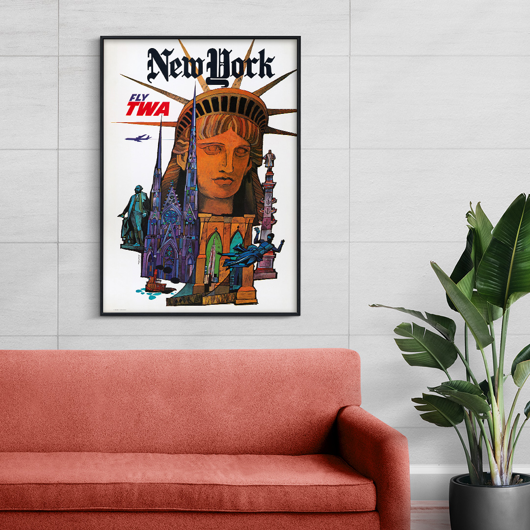 Chez Dzeco.art, nous proposons cette affiche New York Fly TWA en quatre formats : A4, A3, A2 et A1. Ces différentes tailles s’adaptent à tous les espaces, grands ou petits. Vous pouvez également choisir entre deux types de finitions :