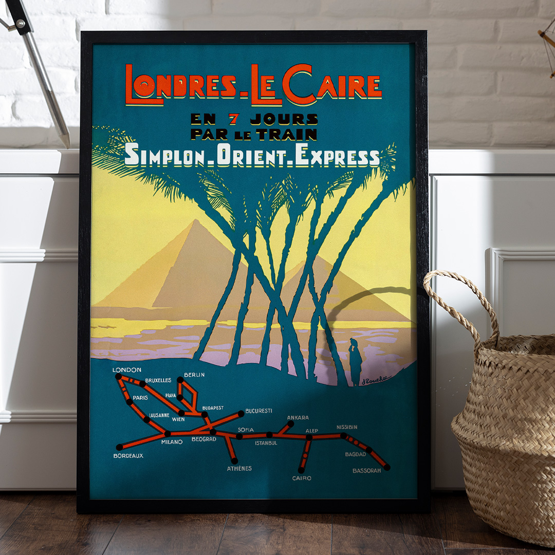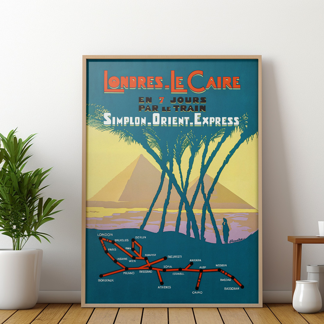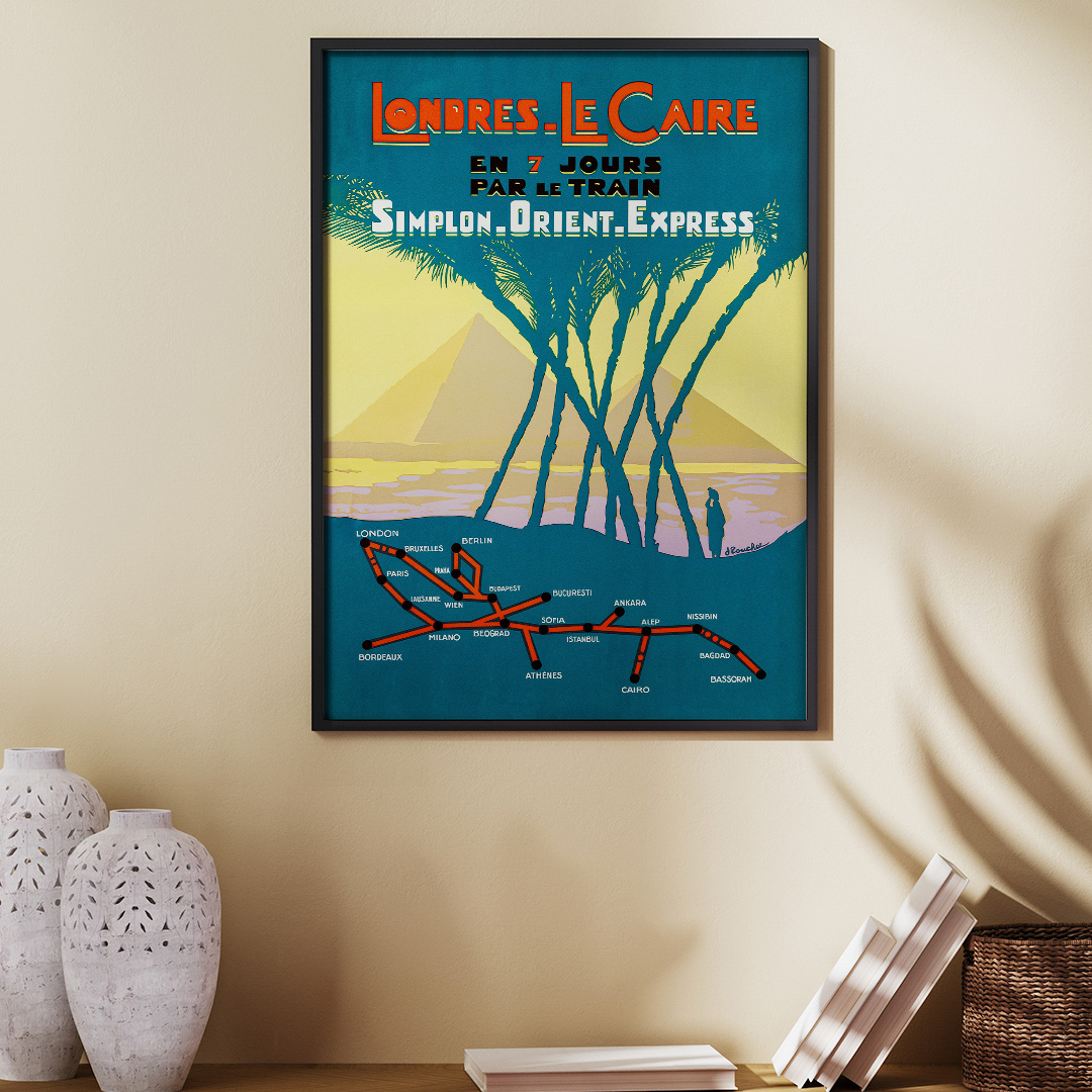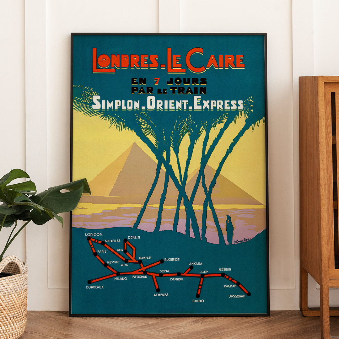 Cette affiche vintage Orient-Express Londres Le Caire est un choix idéal pour enrichir une décoration élégante. Elle traverse les époques sans perdre de son pouvoir évocateur.