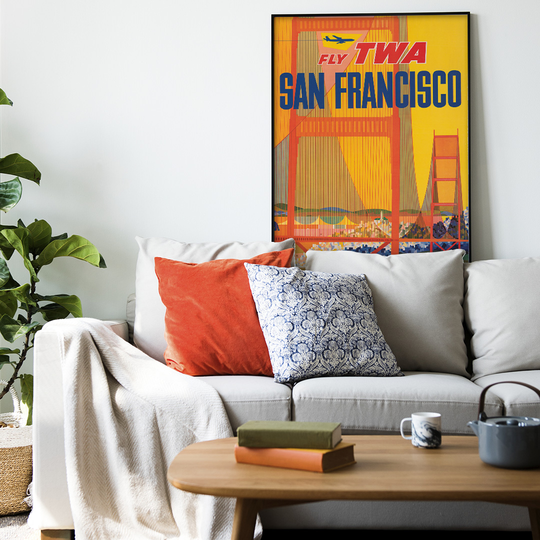 Chez Dzeco.art, nous proposons cette affiche San Francisco Fly TWA dans quatre formats : A4, A3, A2 et A1, afin de s’adapter facilement à chaque intérieur. Vous pouvez aussi choisir entre deux types de finitions :